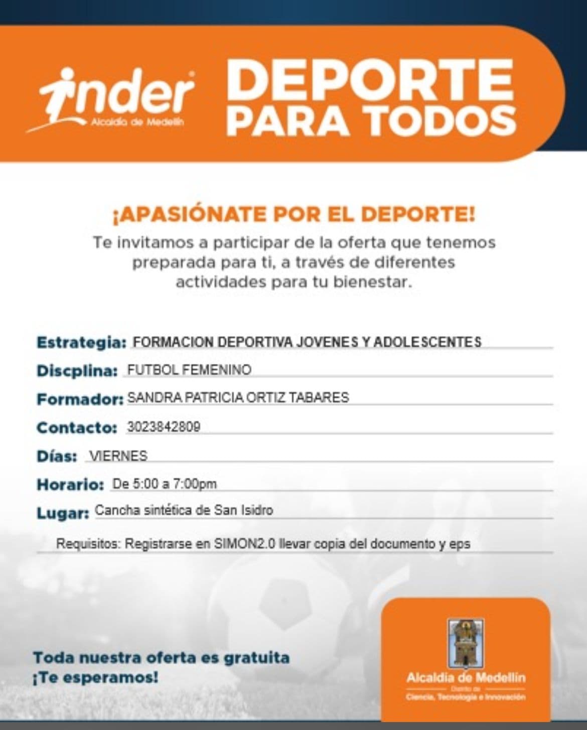 🙌 El Inder Medellín los invita a participar de esta oferta deportiva pensada para el bienestar, la actividad física y el fortalecimiento de hábitos saludables en la comunidad.