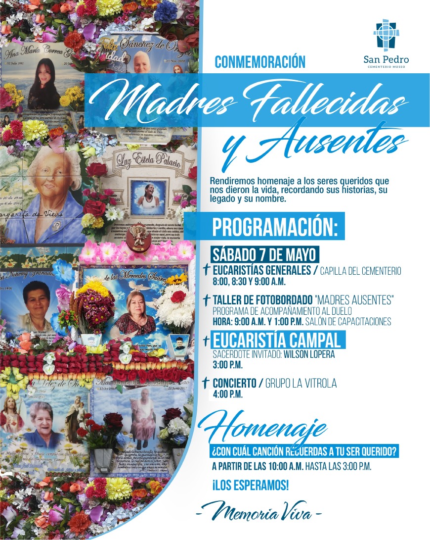 El Cementerio Museo San Pedro invita a la comunidad a la “Conmemoración de Madres Fallecidas y Ausentes”, donde habrá misas, conciertos y taller de Fotobordados.