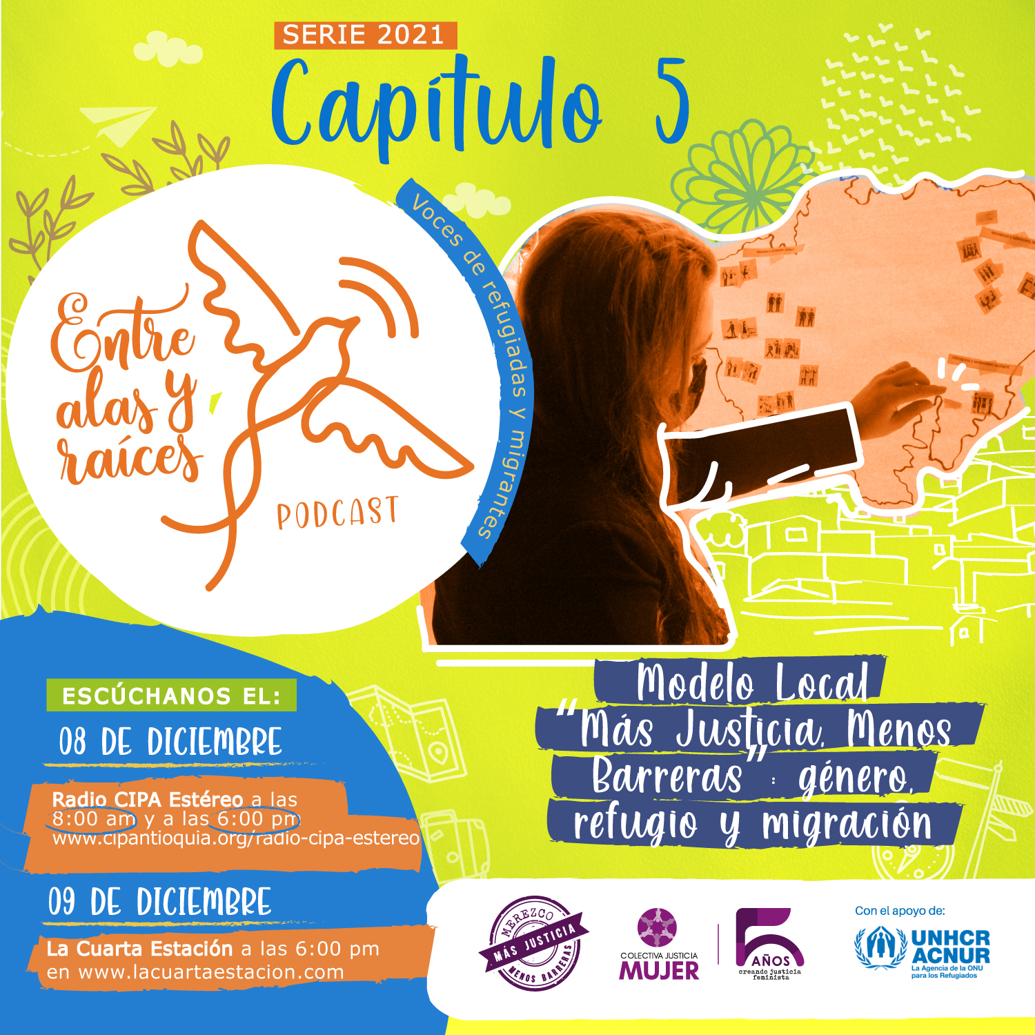 En el marco del #25N y los 16 días de activismo contra la violencia de género ¡¡¡ Estamos estrenando el quinto capítulo del Podcast Entre alas y raíces de la serie 2021!!! En esta nueva entrega conversaremos acerca de cómo el Modelo Local «Más Justicia, Menos Barreras», se ha consolidado como una innovadora estrategia pedagógica que aborda en su tercera cohorte el tema de género, refugio y migración , a través de un nuevo módulo especializado en el tema. En este capítulo conversaremos sobre: el origen de esta innovadora estrategia formativa, con la que hemos certificado a personas durante sus tres cohortes, así como sus principales logros y desafíos.