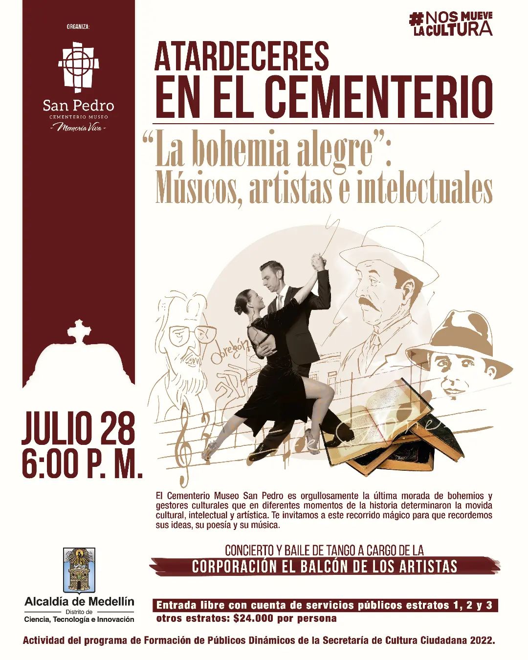 El Cementerio Museo San Pedro invita a la comunidad en general a participar de evento “La bohemia alegre: Músicos, artistas e intelectuales”, donde se recordarán aquellos bohemios y gestores culturales que descansan en este campo santo.