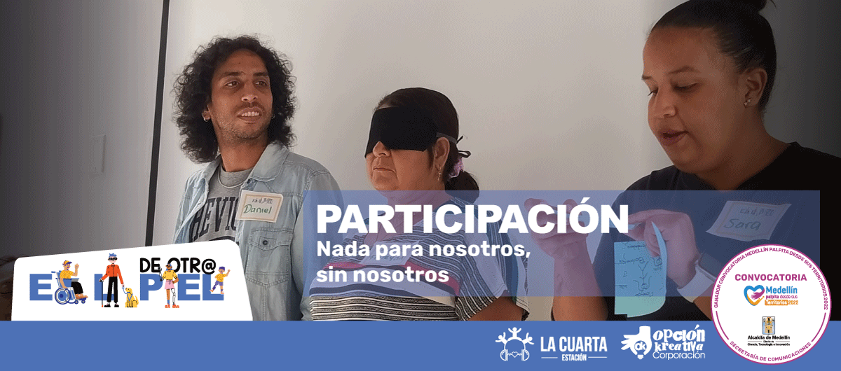 La Cuarta Estación, a través de la estrategia de movilización En La Piel De Otr@, sensibilizó de una manera lúdica a diferentes líderes de la Comuna 4 – Aranjuez frente a la participación de las personas con discapacidad en la vida social y política. Daniel Urrego, persona con discapacidad visual, fundador del Centro Cultural La Libélula y participante de la actividad, manifestó que “si uno no se concientiza a sí mismo de asumir una postura política, nadie lo va a hacer. Entonces, como en el ejercicio de ahorita, es que usted no puede quedarse callada, porque eso da pie a que otros hablen por usted y tome las decisiones, y quizás que usted no quiere que sea así”.