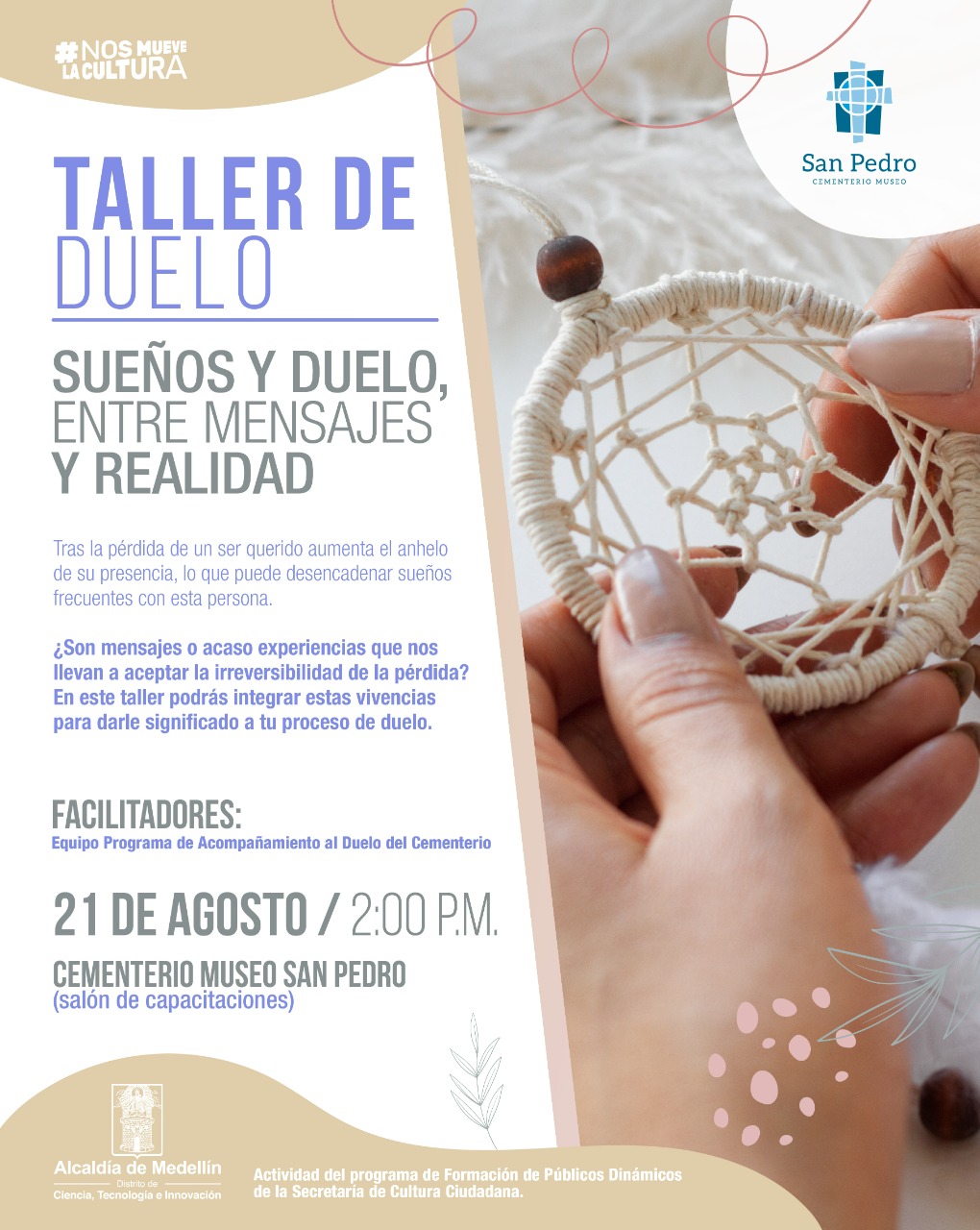 El Cementerio Museo San Pedro invita a la comunidad en general a participar del “Taller: Sueño y Duelo, entre Mensajes y Realidad”, donde los participantes realizarán un atrapasueños, mientras conversas con otras personas que han perdido a un ser querido.