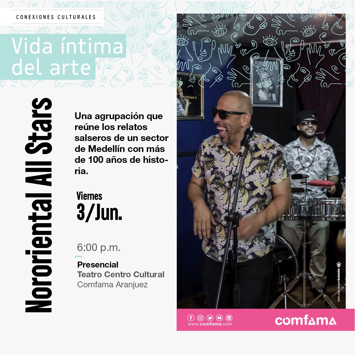 El Centro Cultural Comfama de Aranjuez invita a la comunidad a asistir al evento “Vida Íntima del Arte: Nororiental All Stars”, donde estarán artistas salseros utilizando su música para contar relatos de esta zona en la ciudad.